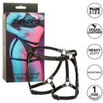 Steigern Sie das Vergnügen mit dem Multi Chain Thigh Harness aus der Euphoria-Kollektion: ein Premium-Accessoire für intensivere Wünsche. Verstellbare Taillen- und Oberschenkelgurte sorgen mit einem einfachen Schnallenverschluss für eine bequeme Passform. Das zeitgemäße Design sorgt für Langlebigkeit und verbessert die Gesamtzufriedenheit. Genießen Sie das luxuriöse Gefühl der weichen Samtinnenseite und den Hauch von Raffinesse der veganen Lederaußenseite. Die robuste Konstruktion mit doppelter Polsterung und Nähten sorgt für Komfort bei leidenschaftlichen Begegnungen. Nicht anlaufende metallische Akzente sorgen für Glamour und sorgen für eine atemberaubende und verlockende Optik. Mit seinem vielseitigen Design passt es in die meisten Standardgrößen. Entfesseln Sie Ihre Wünsche und entdecken Sie neue Ebenen der Aufregung mit dem Collections Multi Chain Oberschenkelgeschirr