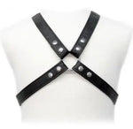 Praktizieren Sie BDSM mit diesem Ledergeschirr für Männer, mit verstellbaren Riemen in Kreuzform.