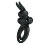 If you can't resist the sexually enhancing effects of a cock ring, you'll love this bunny cock ring. The ring itself hugs the base of your penis, helping to keep your erection harder longer. The silky silicone rubs against your clitoris, sending intense vibrations to your clitoris and the entire shaft for incredible stimulation like never before. The attached bullet features ten different vibration patterns, so it can deliver any sensation you prefer. Enjoy this high-quality silicone cock ring at an affordable price and an unbeatable feel.