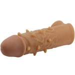 The casing is made of skin-like liquid silicone for an ultra-realistic feel and is expertly molded for a realistic appearance. This natural-feeling penis extension sleeve conforms to your erection and features a comfortable hollow shaft and ball ring for a secure fit that won't budge during play. The thick sleeve walls and raised nubs offer even more stimulation with every thrust.
