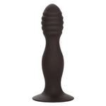 From the timid novice to the erotic expert, the CalExotics Silicone Ribbed Anal Stud will delight every backdoor pleasure seeker. The virtually seamless silicone probe features a ribbed tip, an accentuated head, and a powerful suction cup base. The ridged body and ribbed tip hit just the right spot every time. The flanged base features a sturdy suction cup that can be used in a harness or mounted on a flat surface for sensational hands-free fun. The flexible probe is made of smooth, seamless silicone. The body-safe material is fragrance- and phthalate-free to keep your most sensitive areas happy and healthy.