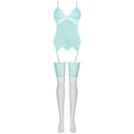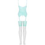 The Persinne Mint Emporio collection is a luxurious three-piece nightwear set featuring a lace corset, lace thongs, and belted stockings. Designed for both special occasions and everyday wear, it's the perfect combination that no woman should be without.