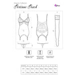 The Persinne Peach Emporio collection is a luxurious three-piece nightwear set featuring a lace corset, lace thongs, and belted stockings. Designed for both special occasions and everyday wear, it's the perfect combination for every woman's wardrobe.