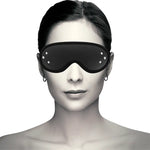 Diese Maske wird mit einem bequemen elastischen Stoffstreifen befestigt. Hergestellt aus veganem Leder.