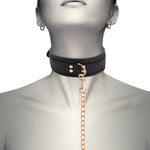 Dieses Sklavenhalsband mit veganem Leder, nickelfreier und langlebiger Metallkette ist perfekt für fortgeschrittene Spieler.
