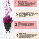 Die Gcup-Menstruationstasse ist glockenförmig. Der Hauptvorteil der Gcup ist das interne Rückschlagventil. Dank des Ventils gelangt bei einem aktiven Lebensstil keine Flüssigkeit zurück in die Vagina. Sie können Ihren täglichen Aktivitäten nachgehen, Sport treiben und sogar schwimmen und dabei „diese Tage“ völlig vergessen. Die Gcup hat eine weiche und glatte Oberfläche und die perfekte Größe, sodass Sie sie nicht spüren. Darüber hinaus sparen die Schalen im Vergleich zu herkömmlichen Binden und Tampons erheblich an Gewicht. Die Gcup-Menstruationstasse ist absolut sicher für die Gesundheit der Frau.