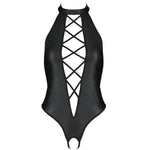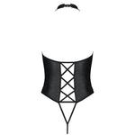 Der Nancy-Teddy vereint eine Prise Obszönität und Zartheit. Alles dank des schwarzen Leders und eines tiefen Ausschnitts, der perfekt zu den gekreuzten Streifen passt. Könnte es sinnlicher sein?